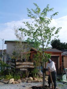 この進化を続ける第2展示場に昨日、大きなサクラ(ソメイヨシノ)の木を植えました。
