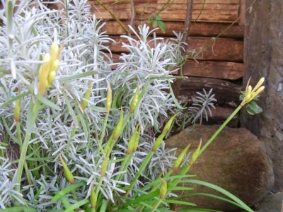 第一展示場のログハウス入り口のアーチそばに植えているキルタンサスの花芽が出てきました。
