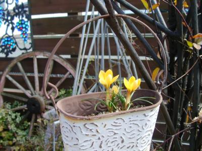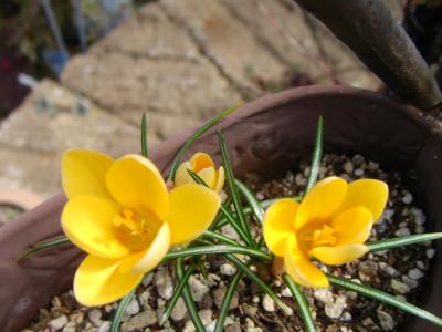 その中に植えていたクロッカスが顔を出しました。