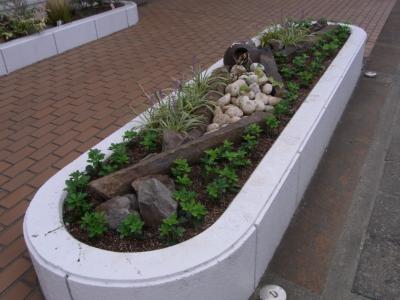 植栽マスのそれぞれに、ロックガーデン、洋風ガーデン、和風ガーデンの3種類にわけてミニガーデンをつくりました。