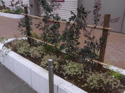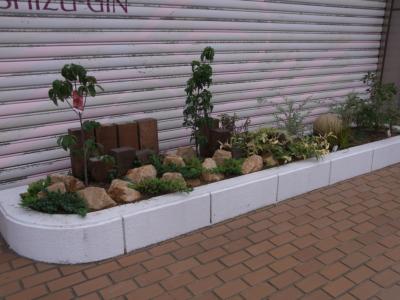 今週はじめに、行われた静岡銀行篠原支店さんの植栽工事です。支店北側入口と東側の既存の植栽マスの中を何か考えてほしいとのことで、依頼を受けていました。