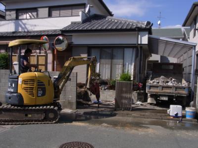 既存のコンクリ部分をこわし、新しいアプローチをつくりかえます。
