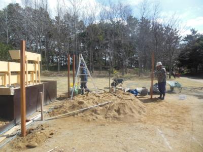 今日は天気もよく、スタッフみんなも元気に工事に取り掛かっています。