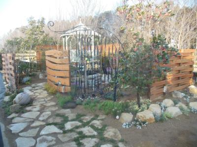 今日は工事5日目。入口にロッカリーと下草が入りました。この先に何があるのか、入ってみたくなる入口です。
