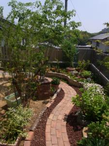 施工を終了した時は、まだ冬でしたので 植栽にまだ葉が出ていなくて さみしい感じでしたが、今回訪ねたところ、植栽がだいぶ育っていてとてもいい感じになっていました。 施工時2013.11月の写真→
