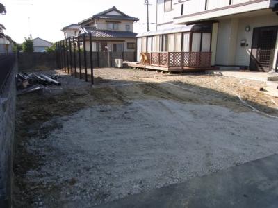 周りは横板塀で囲います。現在はその柱立ての工事中です。出来上がればきっとプライベート空間になるでしょう。