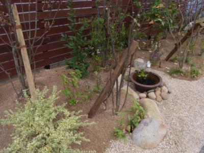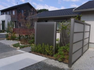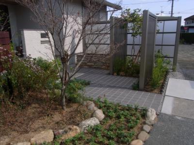 既存のアプローチを延長し、植栽を入れたので奥行き感が出ました。