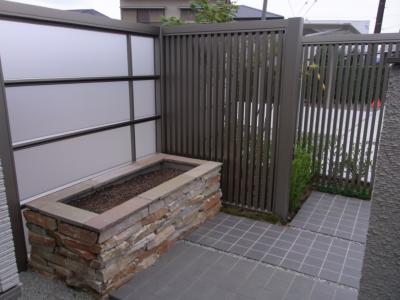 この花壇は、奥さんに季節の花を楽しんで もらうように設置しました。