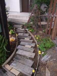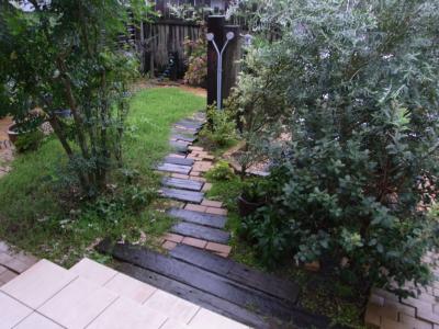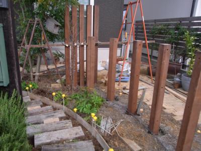 平面的な庭でしたので、角柱でパーテーションやフェンスを作る事によって同じ面積でも奥行き感を感じさせる工夫をしています。(^-^)