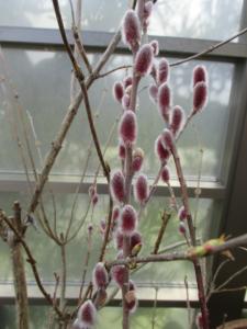 事務所ギャラリー(旧第二展示場)で、ピンクネコヤナギが
