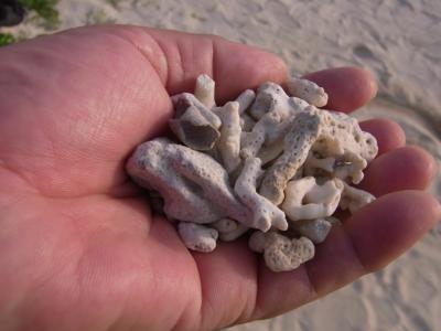 砂浜はサンゴの化石で、できていました。