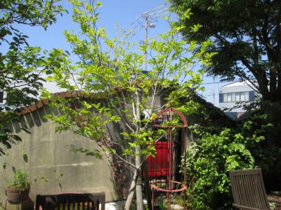 モデルガーデンの塗り壁前のマグノリアワダスメモリー。