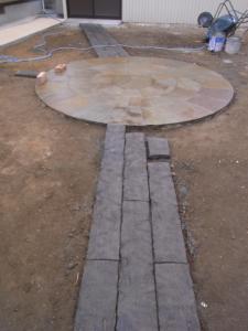 浜松市西区のH様邸。枕木の園路も形が見えてきました。