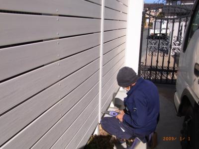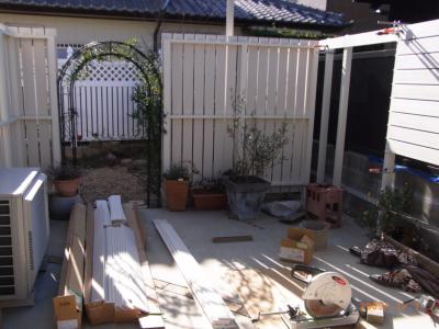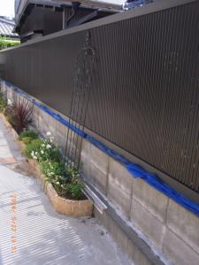前回、別の場所で施工させて頂いた白の板塀を、さらに広げてお隣の黒いフェンスが気にならなくなるように設置しています。