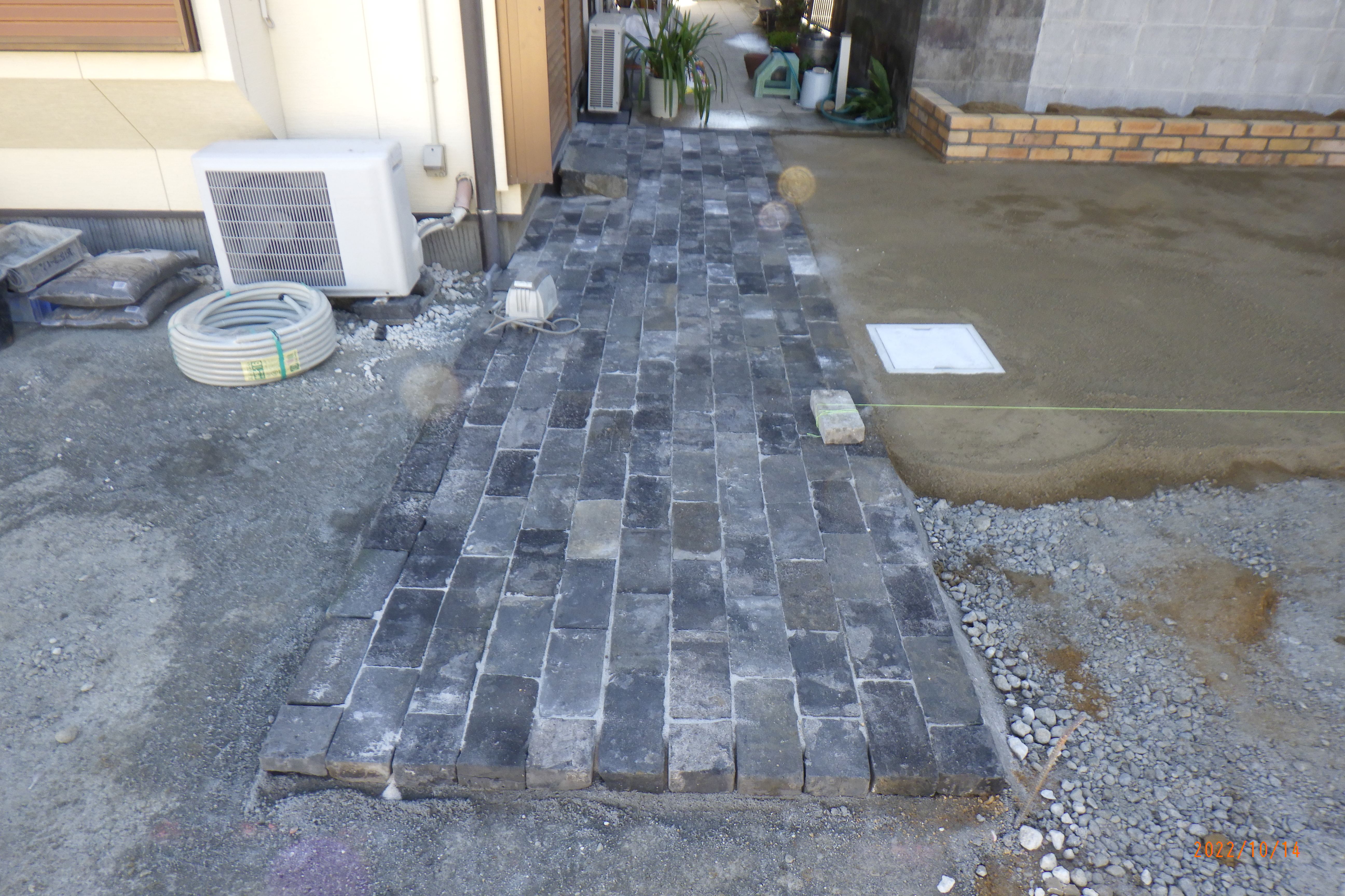 上海レンガの園路を作って、奥には
