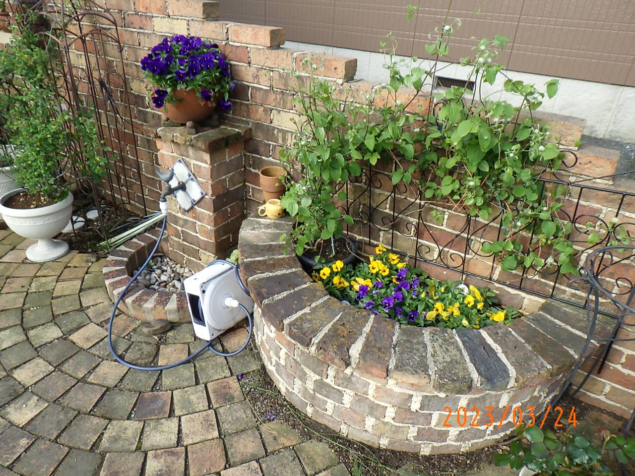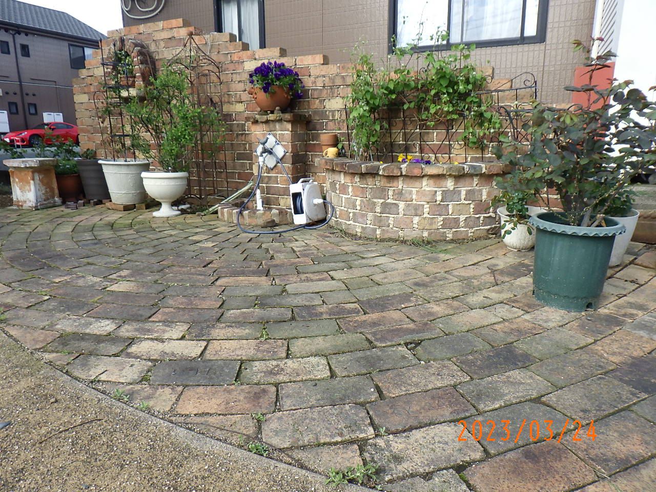 アンティークレンガも苔が生えていい風合いを出しています。