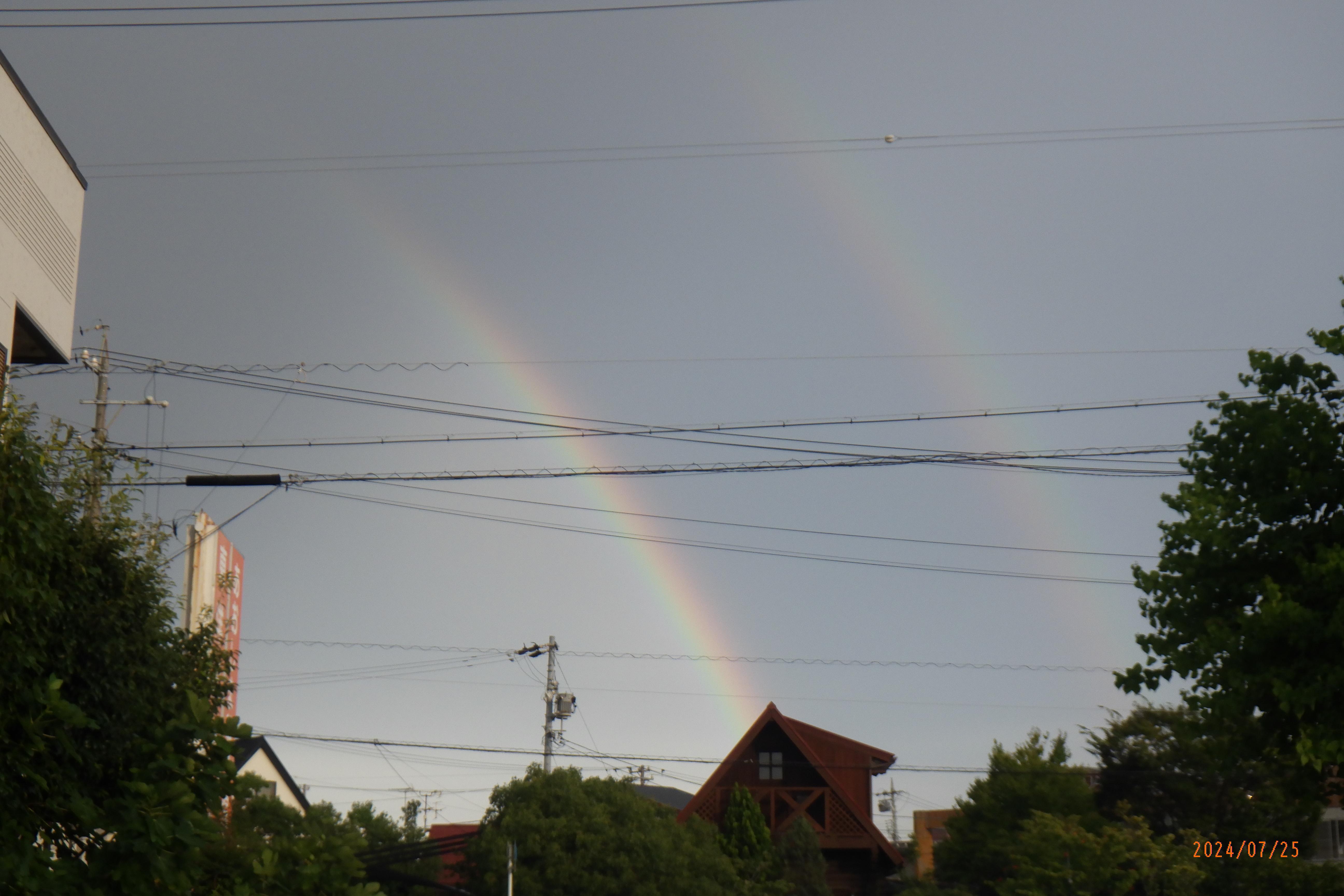 内側は赤、外側は紫と、主な虹と反対で、色も濃いです。