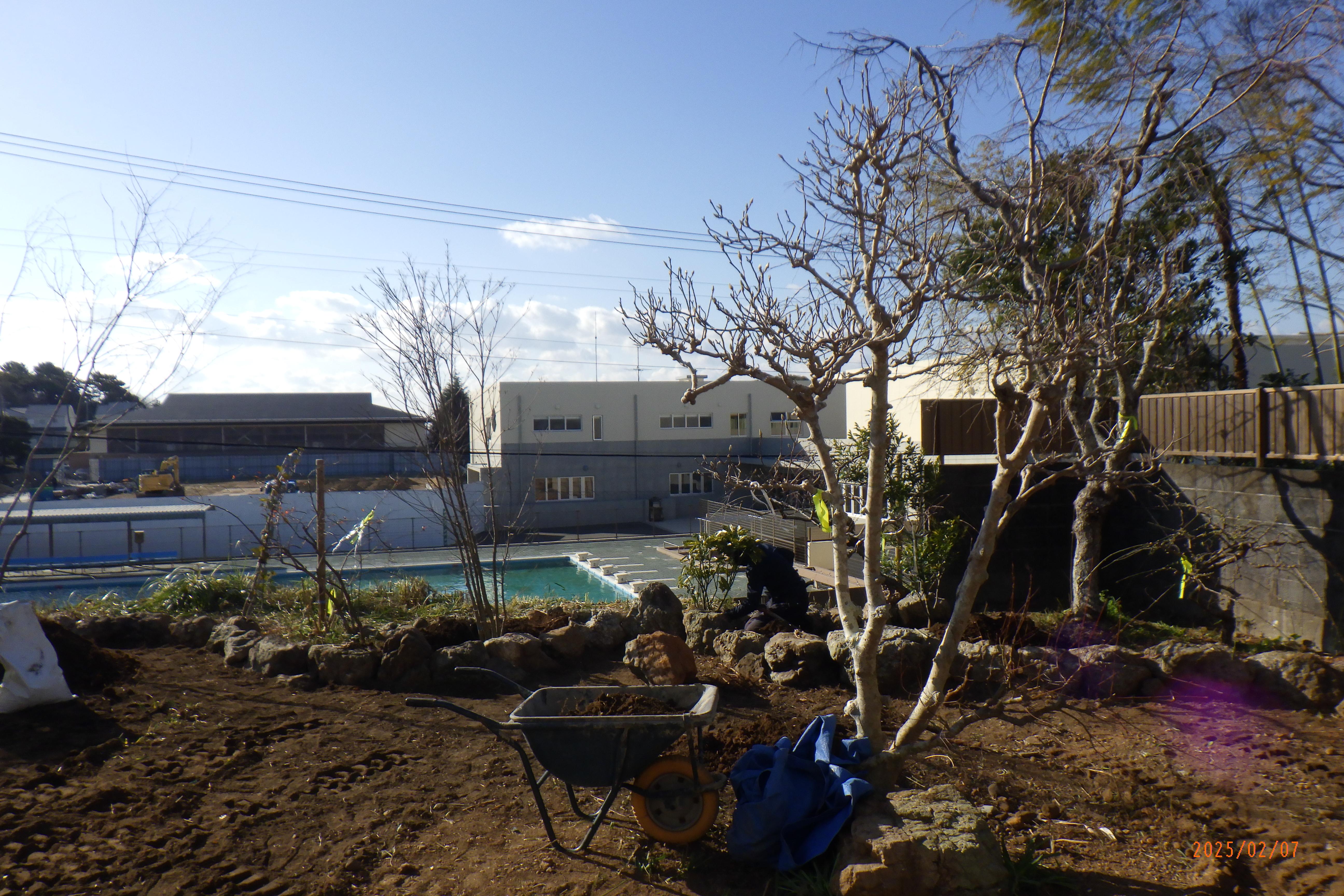 石積みが終われば、いよいよ植栽を植えていきます。