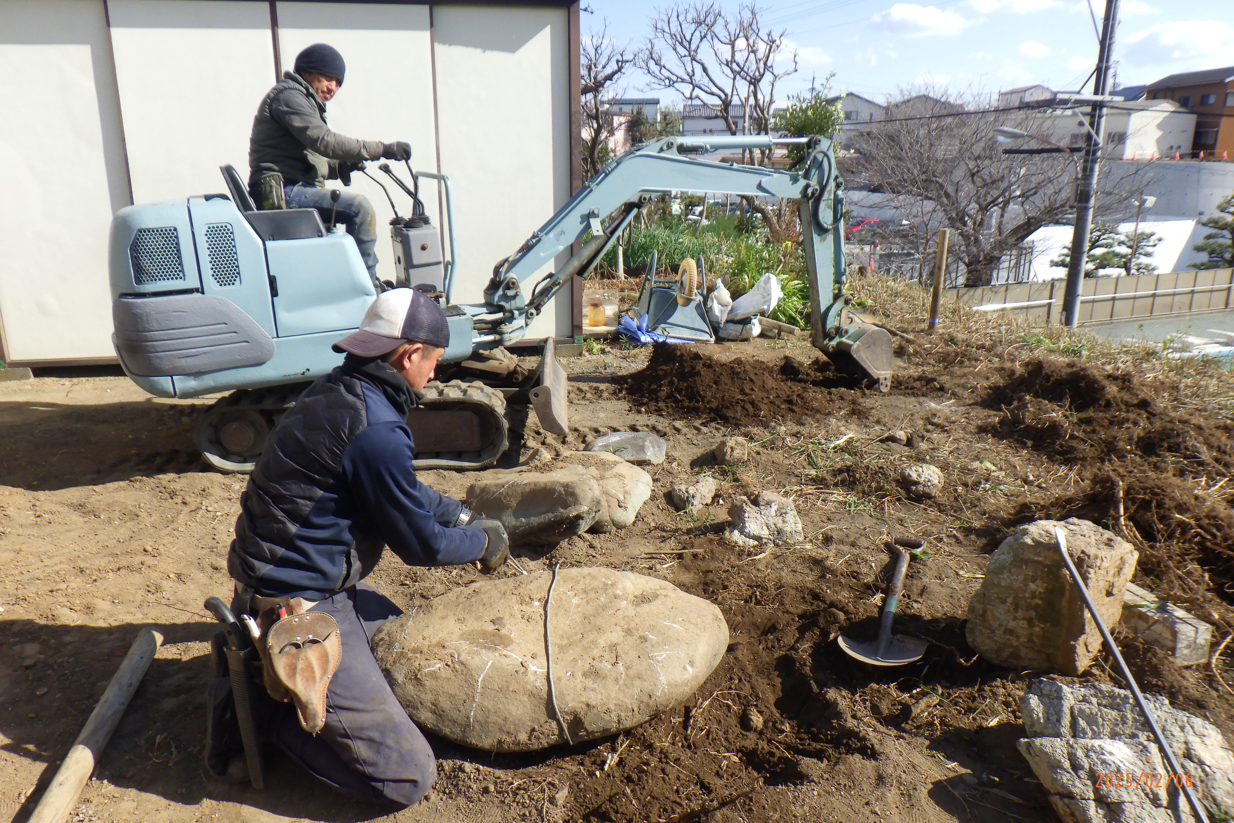 本日は既存の庭石を