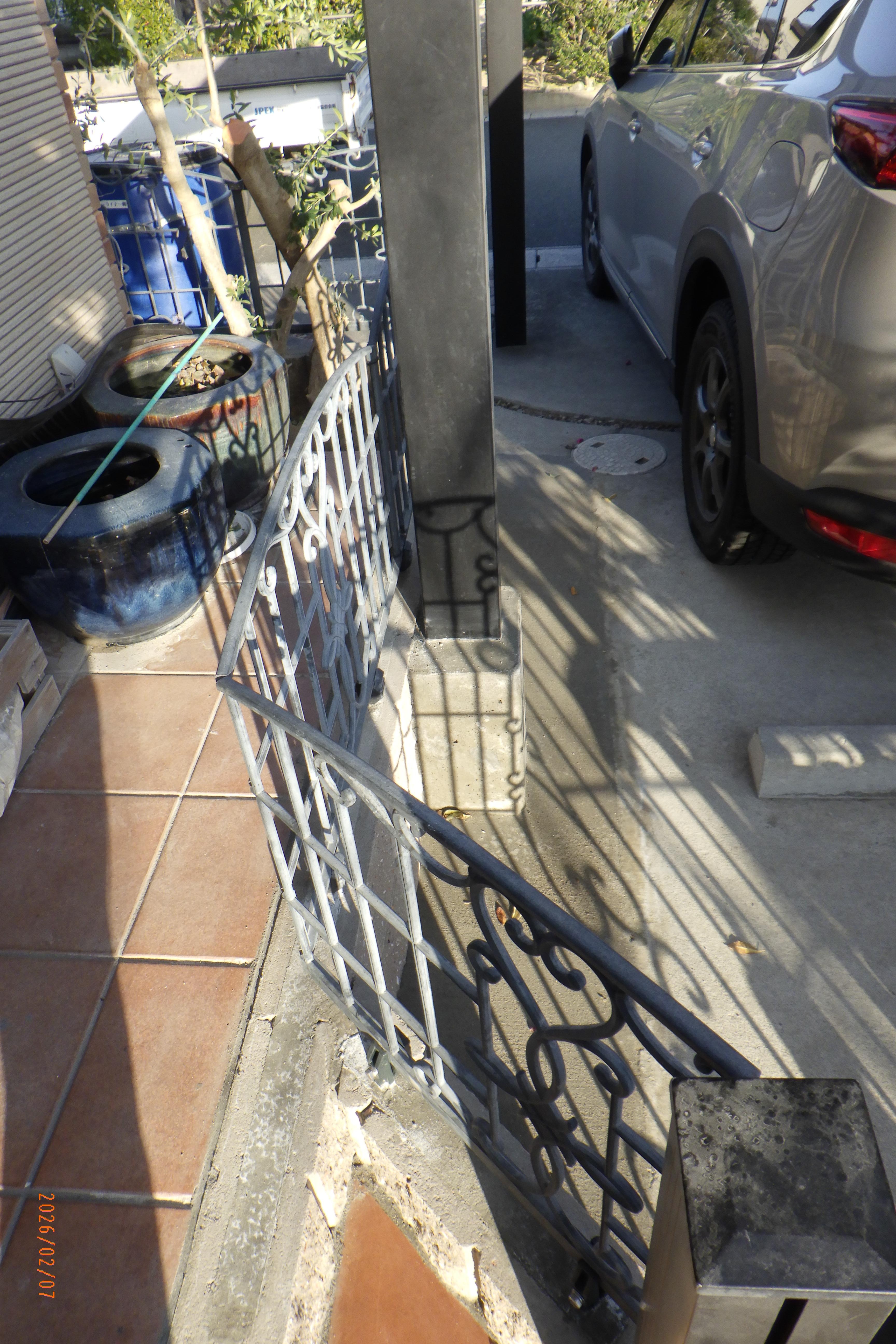 既存の土留めのブロックに車のドアを